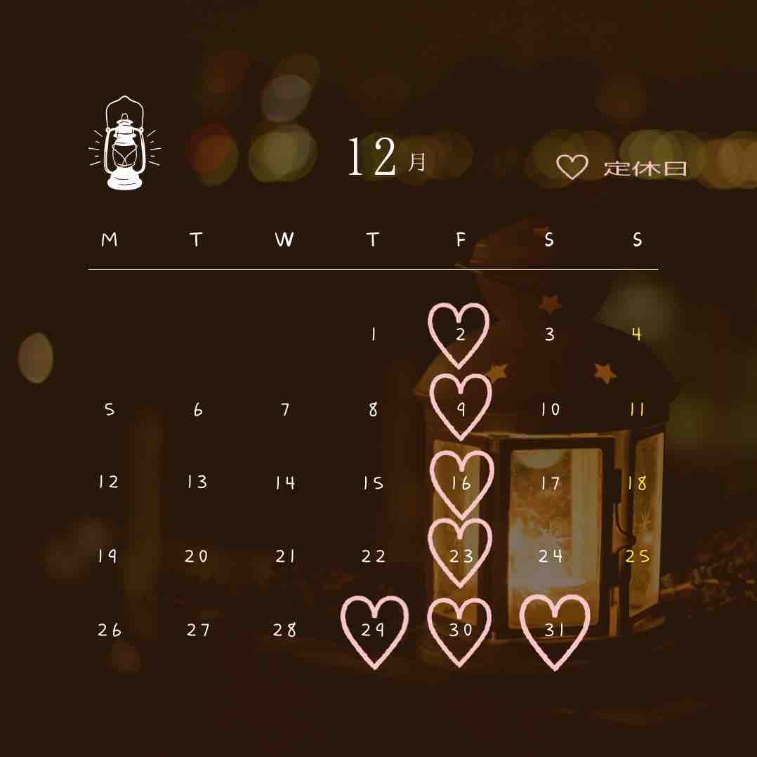 12月のお休みのお知らせです☆